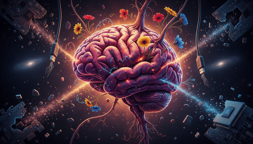 Contrairement à un ordinateur, le cerveau ne suit pas un code binaire rigide. C’est un système organique vivant, influencé par une chimie complexe (hormones, neurotransmetteurs) et capable de se transformer lui-même. De plus, nos émotions et notre corps participent directement à notre pensée, ce qu’aucune machine ne peut reproduire.